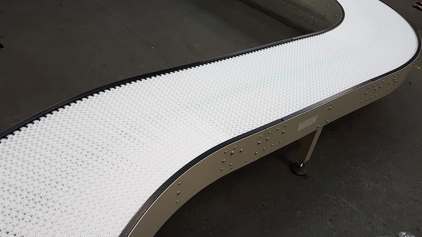 Le principal avantage des bandes transporteuses modulaires en plastique réside dans leur capacité à combiner des sections droites avec des courbes de rayons variables, permettant ainsi de réaliser plusieurs changements de direction au sein d'un même convoyeur. Une telle combinaison est soit trop coûteuse, soit tout simplement impossible avec les bandes transporteuses traditionnelles en PVC renforcé ou en tissu. Parmi leurs autres atouts, on peut citer leur robustesse, leur utilisation possible en milieu humide et leur facilité de réparation. En cas de dommage ou d'usure, il suffit de remplacer quelques sections en plastique et axes de liaison, ce qui permet de ne rénover que la partie endommagée ou usée de la bande, sans avoir à remplacer la bande entière.