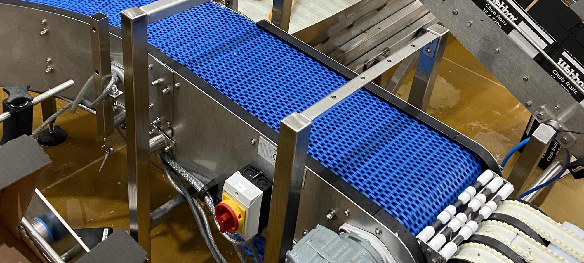 Les ingénieurs d'Amber Industries ont été chargés de concevoir, de fabriquer et d'installer une ligne de convoyage en acier inoxydable pour acheminer les paquets de viande transformée en forme de saucisse destinés à l'alimentation animale de la machine de transformation à la zone d'emballage.